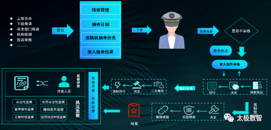 一、产品简介“互联网+监管”系统研发主要依托区块链、人工智能、大数据技术等推动监管创新,以监管数据共享为核心,构建各类型风险预警模型,实现及早发现防范苗头性和跨行业跨区域风险;建立健全统筹协调和业务协同机制,实现“进一次门,查多项事…